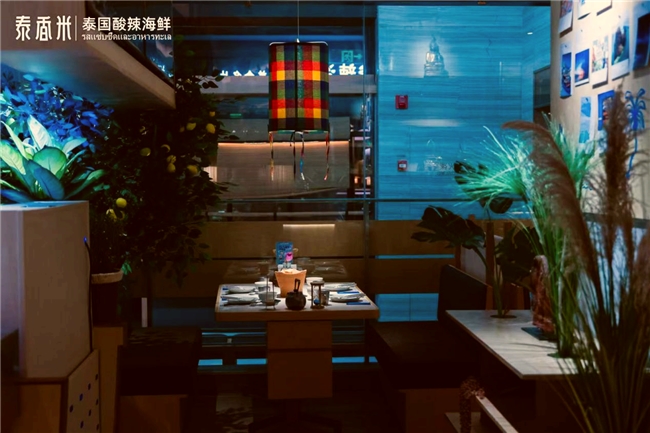 泰香米综合考虑顾客需求、品牌发展方向以及商圈竞争优势,以“城市绿岛”概念设计开放式厨房岛台,冻鲜食材展示区,室内柠檬树花园,营造现代都市人品味自然的放松空间。